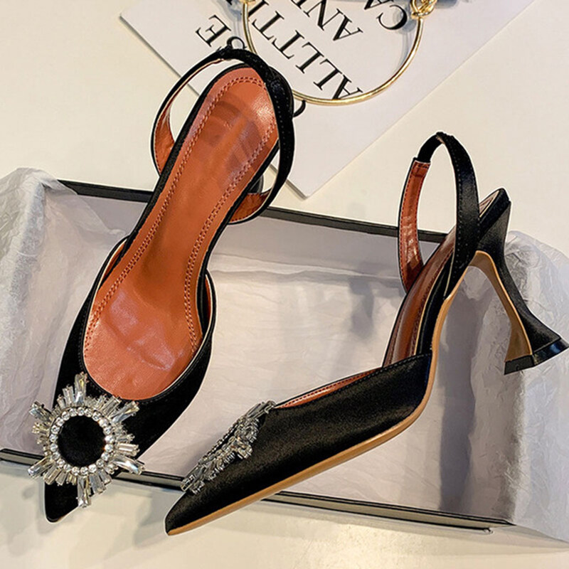 Brand women Pumps Big Size 34-42 Women Pumps Silk Satin Pointy Toe Rhinestone Crystal High Heels Shoes Slip On Women Wedding Pumps Sandal