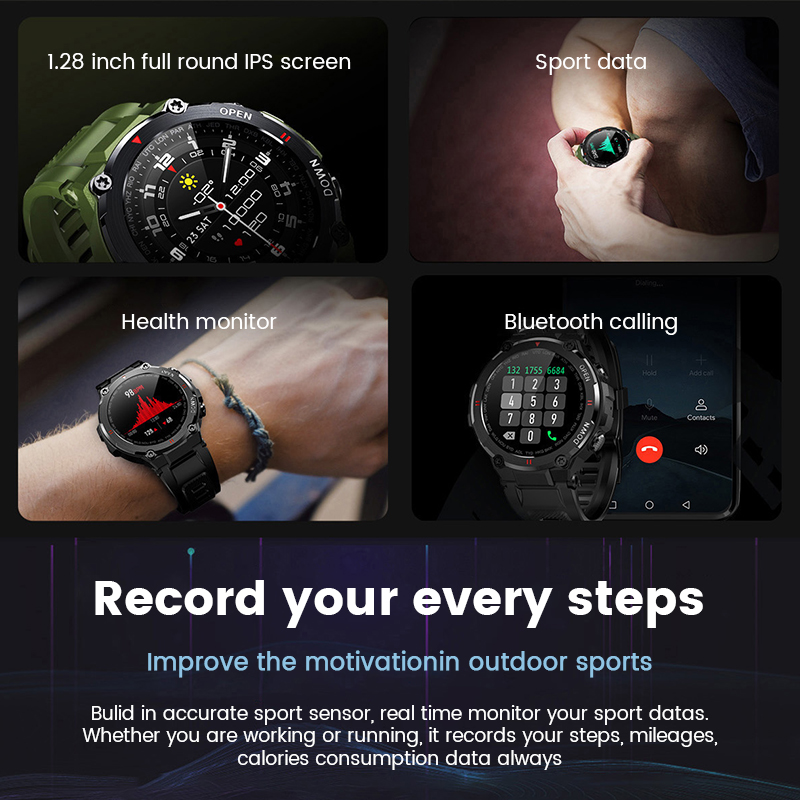 Uonevic 2021 New K22 Smart Watch Men Sport Fitness Bluetooth Call Multifunction Music Control Alarm Clock Reminder Smartwatch For Phone for amazfit watch