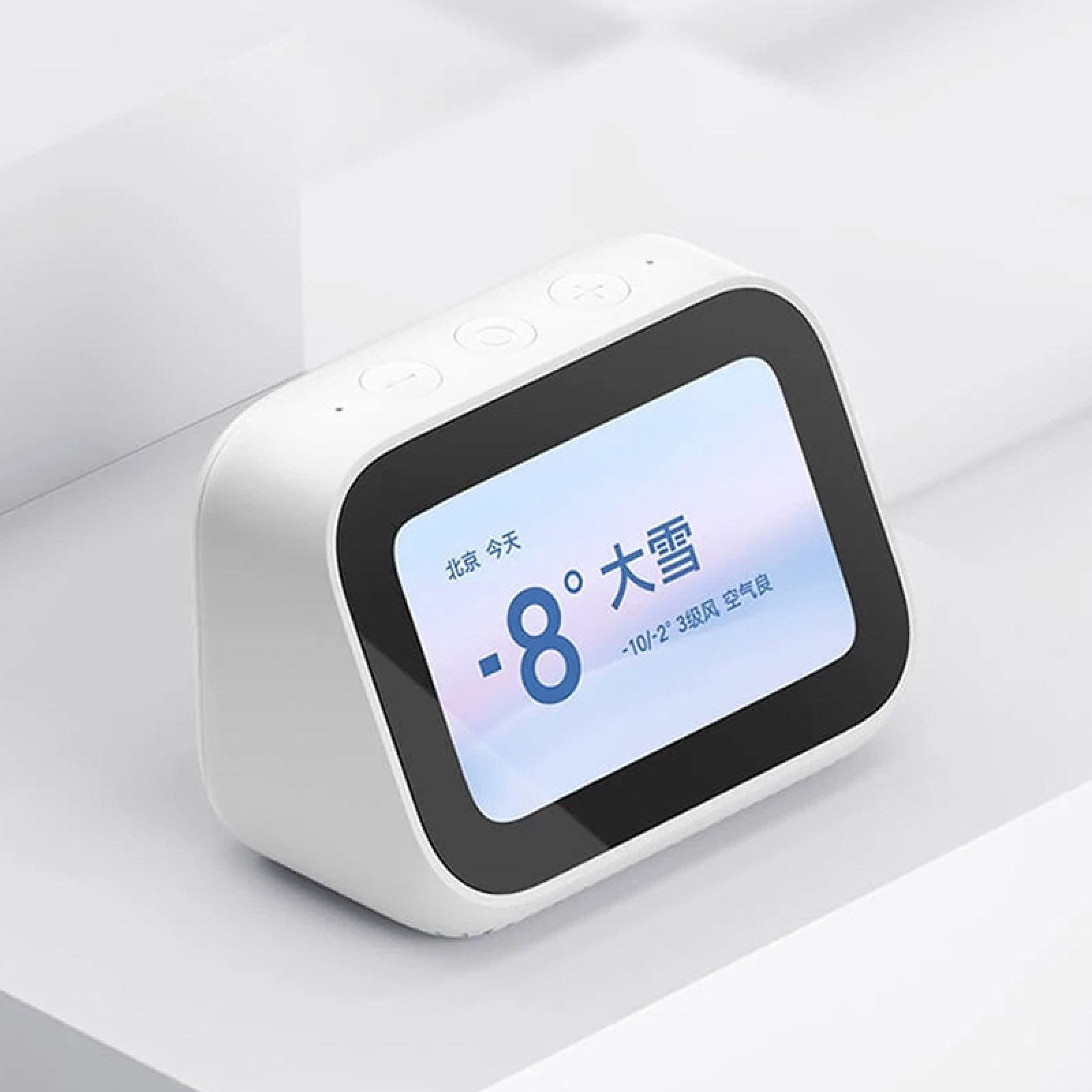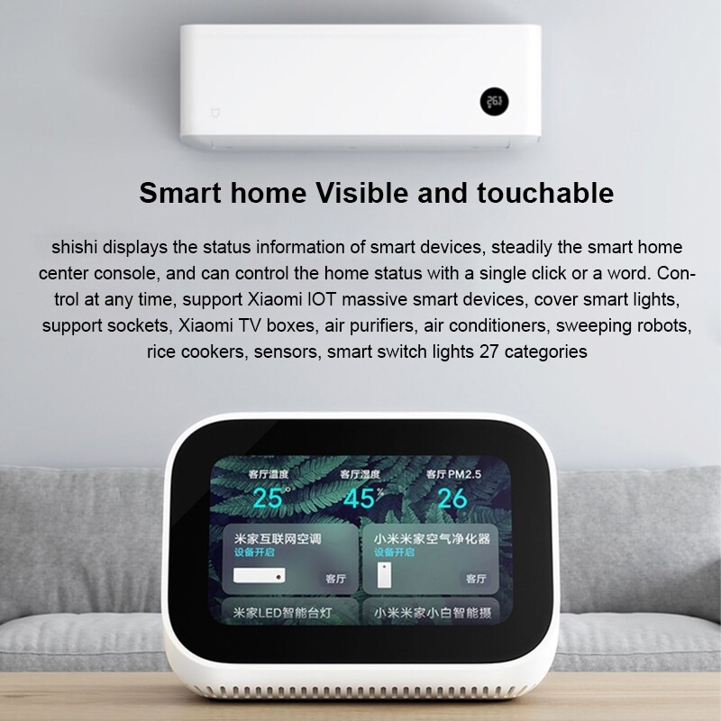 Exterior:1. Size: 113x68x81.5mm2. Weight: about 272g (the actual weight may vary due to the production process)Button description: volume -, screen switch, volume +Display screen:1. Size: 3.97 inches2. Touch: multi-touch3. Resolution: 800x480 pixelsBasic parameters:1. Microphone: support Xiao Ai''s far-field language wake-up2. Speaker: 1.5 inch full range speaker3. Speaker Wattage: 5WWireless connections:1. WiFi: 2.4GHz, support IEEE 802.11 b/g/n protocol2. Bluetooth: BT5.0, support A2DP music playbackInterface: Micro USB (does not support data transmission)Power supply: 5V/2APacking list: Xiaomi Xiaoai touch screen speaker x1, power adapter x1, manual x1