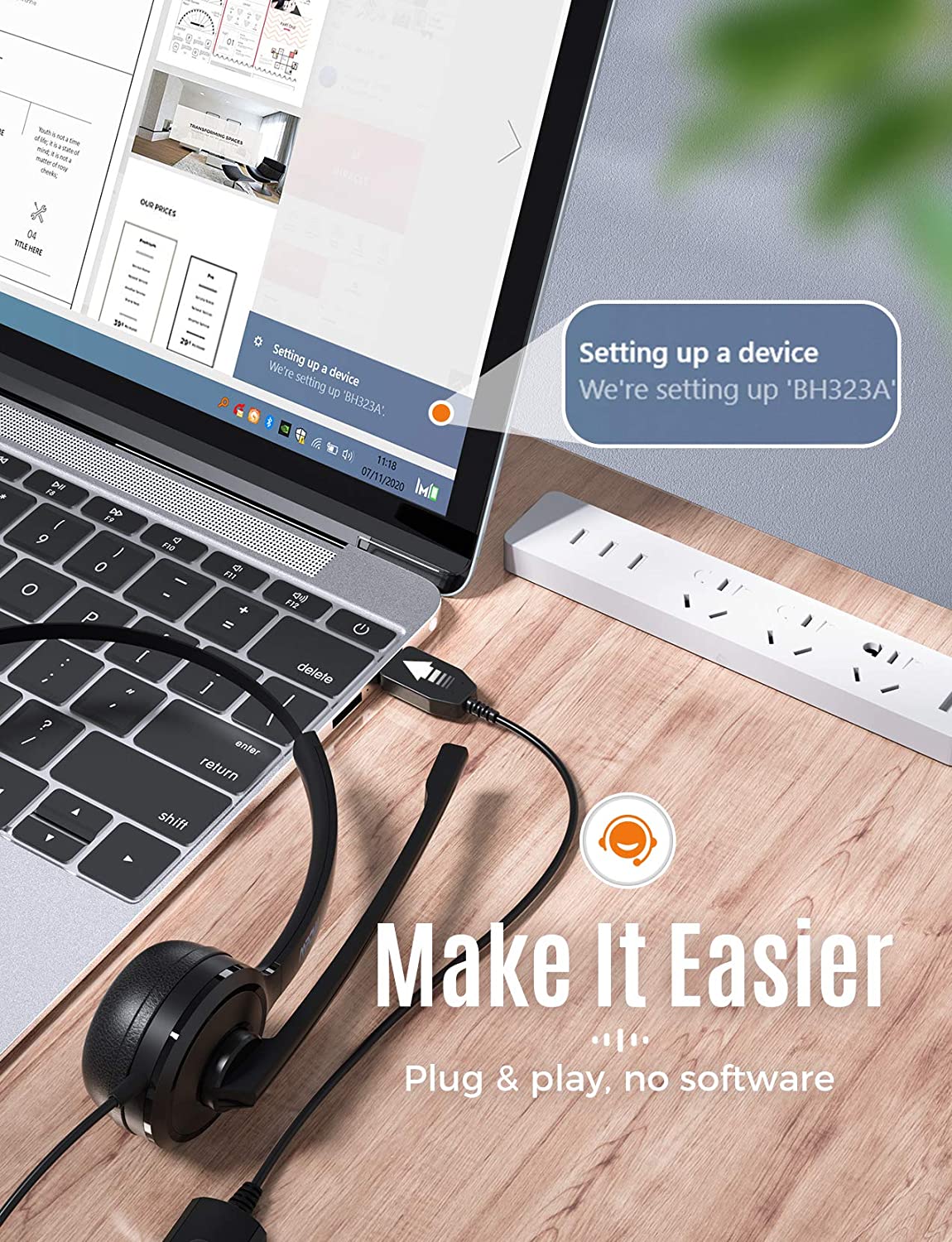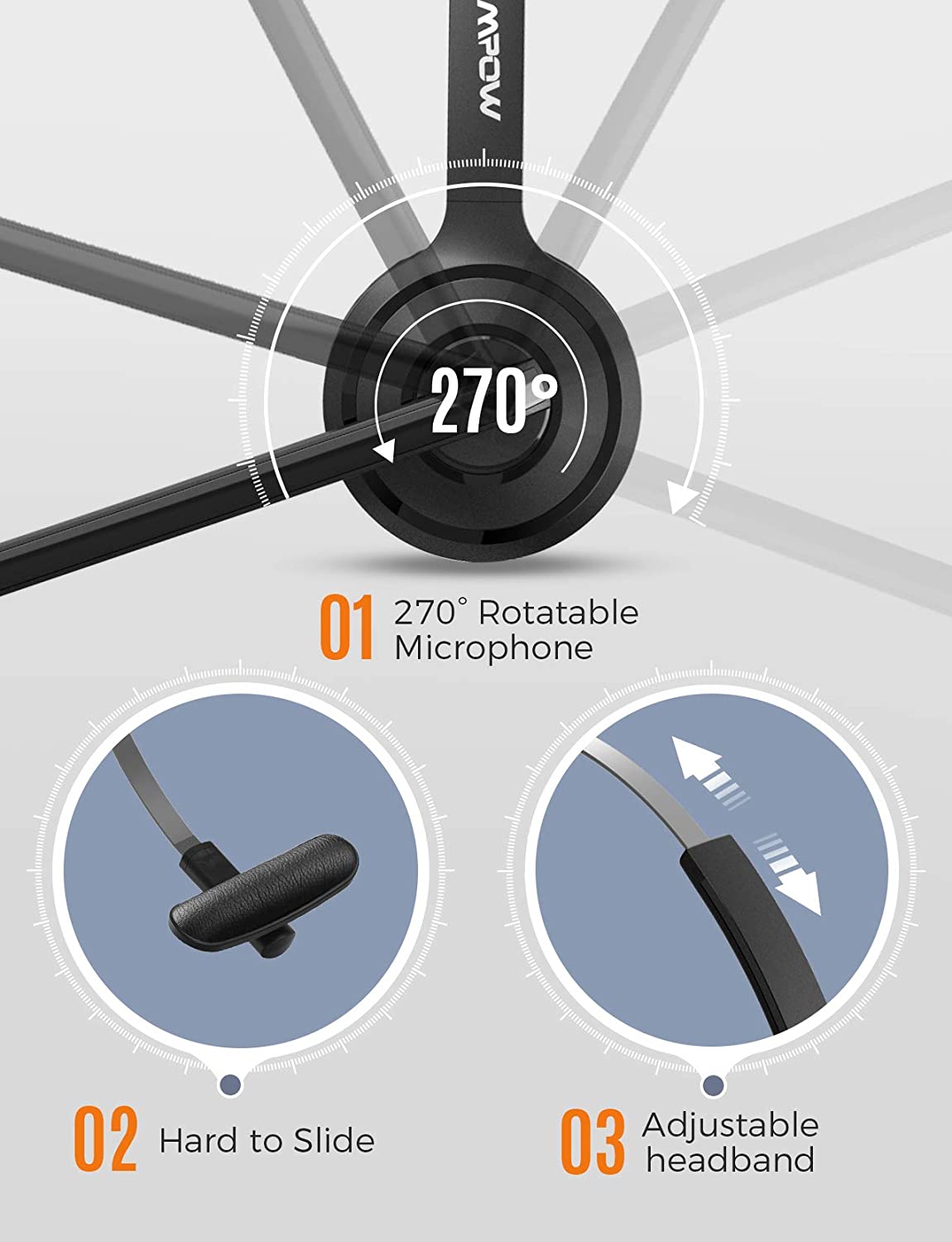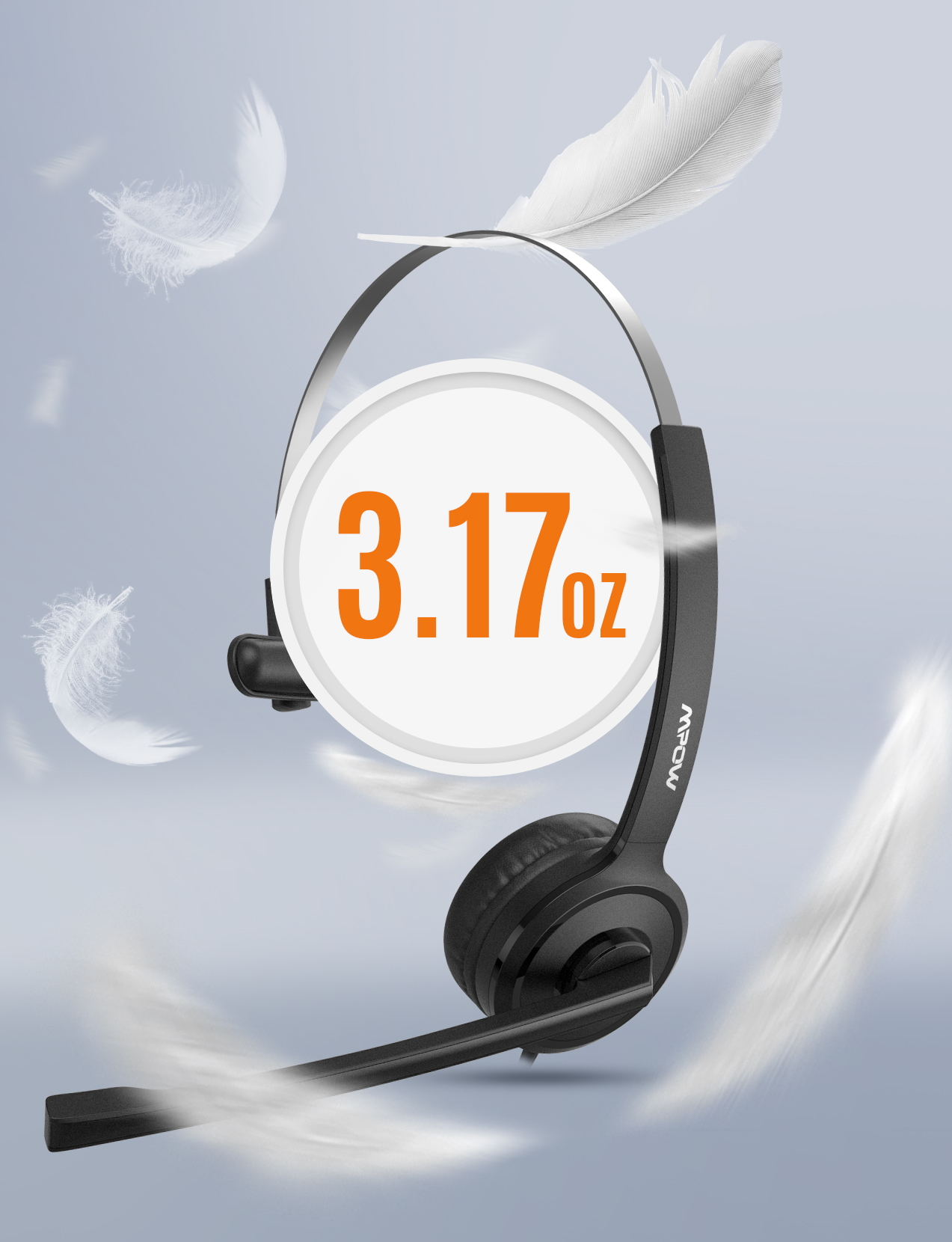 [Mpow] 323 Single-Sided USB Headset with Microphone, Over-The-Head Computer Headphone for PC, 270 Degree Boom Mic for Right/Left Ear, Comfort-fit Call Center Headsets with in-Cord Volume Control