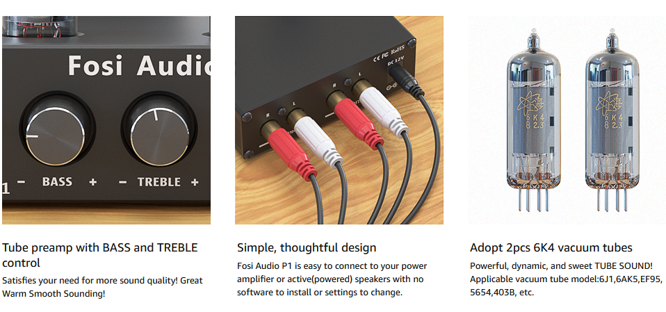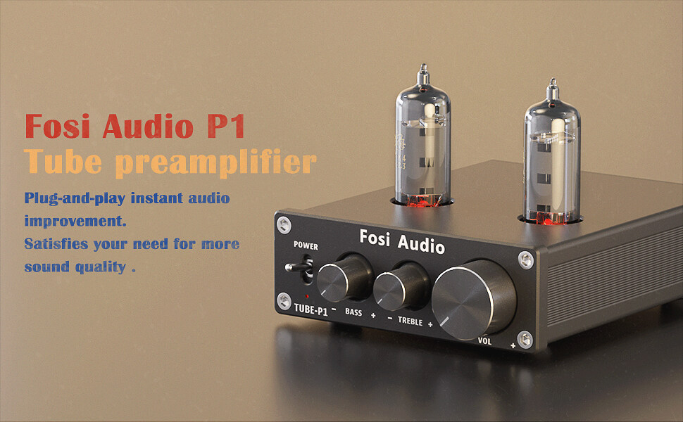 Fosi Audio P1 Tube Amplifier HiFi Stereo Buffer Preamp 6K4 Valve & Vacuum with Treble & Bass Tone Control For Smart Home With 12V Power Supply