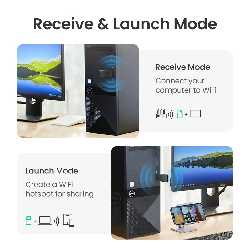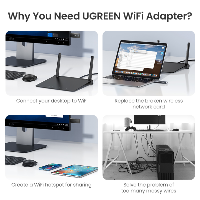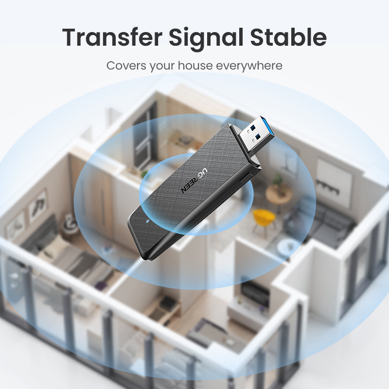 UGREEN Wifi Adapter 1300Mbps 5Ghz & 2.4GHz Dual Band USB Wifi for Laptop Desktop USB Ethernet Adapter Network Card Wifi Dongle