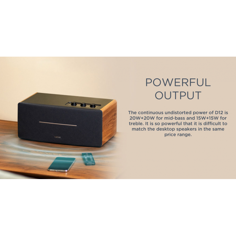 Edifier D12 Tabletop Speaker - Integrated Desktop Stereo Bluetooth Speaker - Wireless Computer Speaker for Desktop Use- 70 Watts RMS with Subwoofer Line Out - Wooden Enclosure