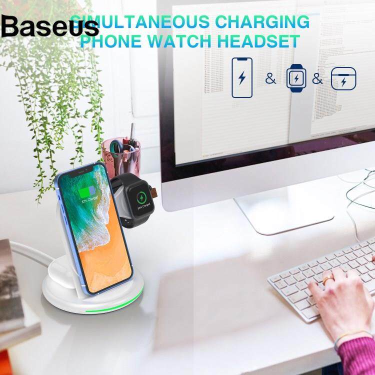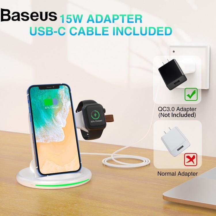 Baseus W-02 3 in 1 15W Wireless Charger for iPhone 13/12 Series/AirPods Pro Portable Charging Dock for Apple Watch