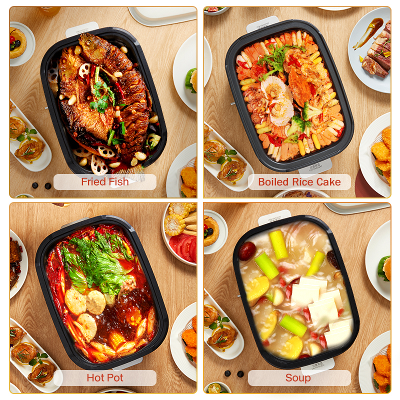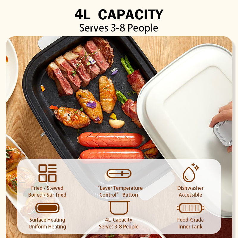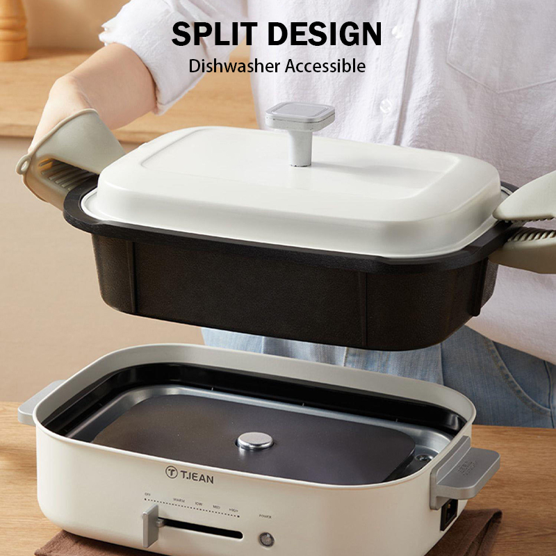 • Versatile Electric Hot Pot - TJean electric hot pot is multiple functional, not only suitable for daily family use but also convenient for gathering with friends. Whether it's sautéing, grilling, shabu-shabu, or steam-ing and hot pot, all dishes can be easily mastered at your fingertips. The unique shape with modern styl-ing adding luxury to your kitchen.