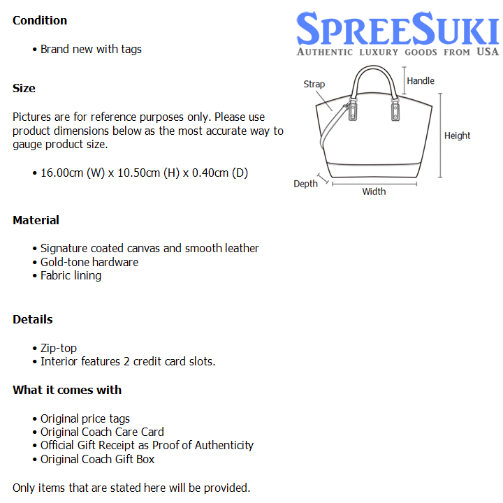 All our products are 100% authentic and purchased from Coach stores in USA. We are a reputable registered business in Singapore and it is illegal to sell counterfeit goods in Singapore. This product also comes with a gift receipt which is printed by the Coach store that we purchased the item from. It states the item that we purchased and the Coach store that it was purchased from, proving the authenticity of the item. Buy with confidence.