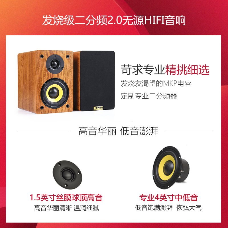 4-Inch High-Fidelity Passive Speaker HiFi Fever-Level Bookcase Box Home Theater Surround Car Machine Change Home Audio