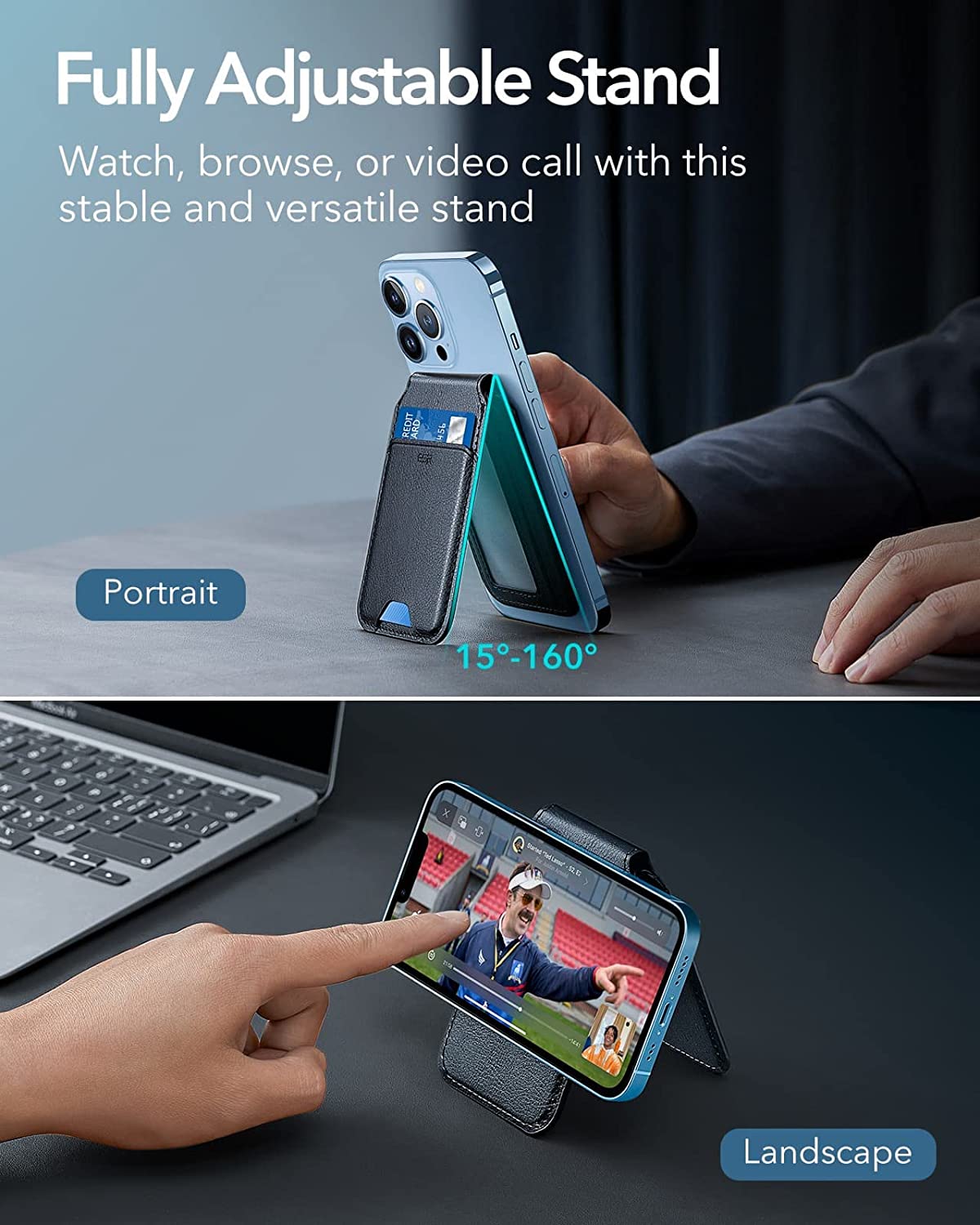 Whether you’re Facetiming in portrait or catching up on your favorite shows in landscape, choose from any angle between 15° and 160° to find the perfect position for any situation.