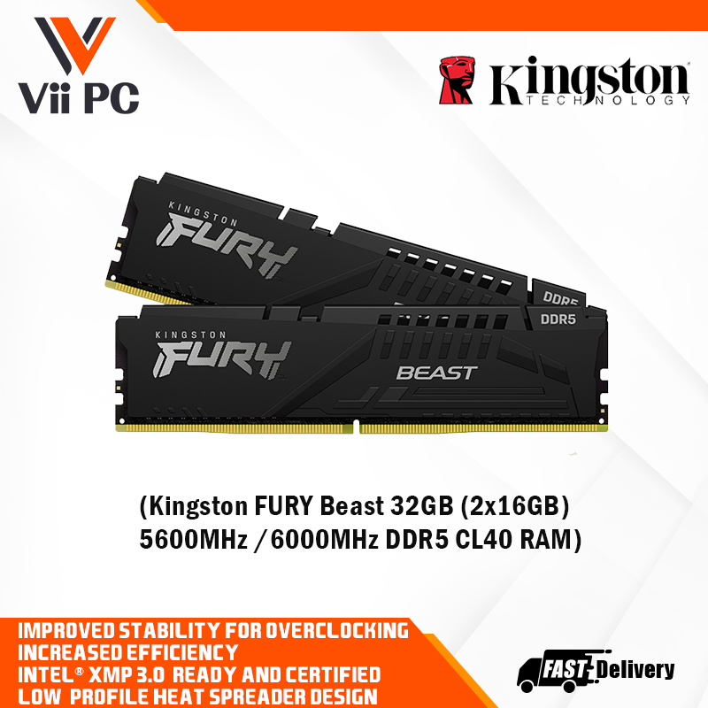 Kingston FURY Beast 32GB (2x16GB) 5600MHz/6000MHz DDR5 CL40 DIMM - Black