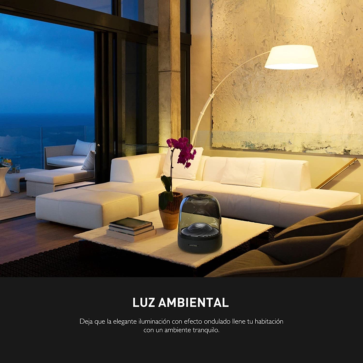 (NEXT DAY DELIVERY) Harman Kardon Aura Studio 3 - Elegant, BT Wireless Speaker with Premium Design and Ambient Lighting - Black