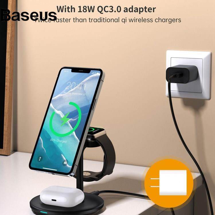 Baseus JJT-980 Desktop Charging Stand 3 in 1 Detachable Magnetic Wireless Charger for iPhone / Apple Watch / Earphones