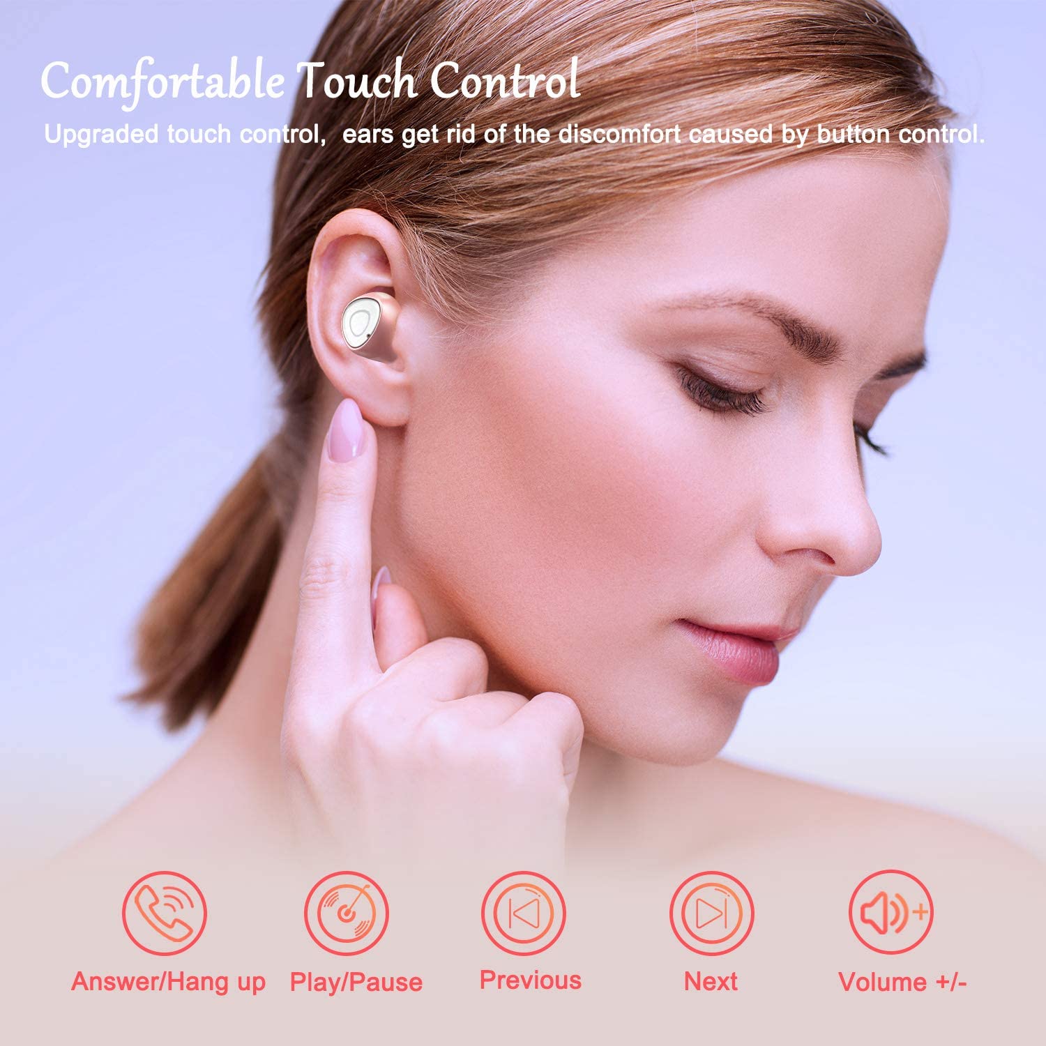 Rose Gold Wireless Headphones, Bluetooth 5.0 Wireless Earbuds IPX5 Waterproof 3D Stereo Sound Headphones, 22H Playtime Passive Noise Canceling Wireless Earphones for Working Running, Built in Mic