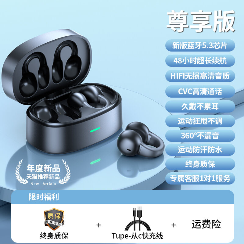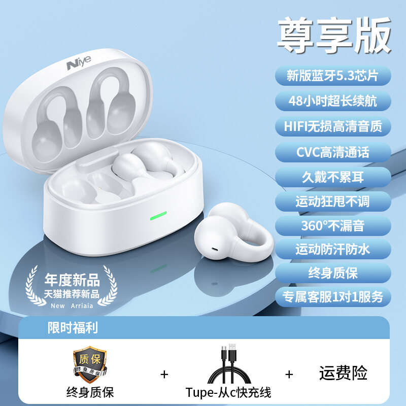 Niye/Durable Bluetooth Headset for Bone Conduction Non in-Ear Wireless Hanging Clip-on Running Sports Dedicated High Sound Quality