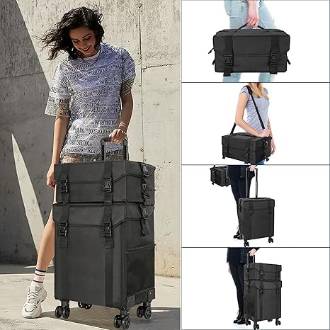 • 【Professional Rolling Makeup Case】The 2-in-1 Makeup Travel Case is designed for professional makeup artists, nail technicians and hair barbers/stylists.