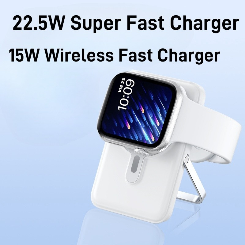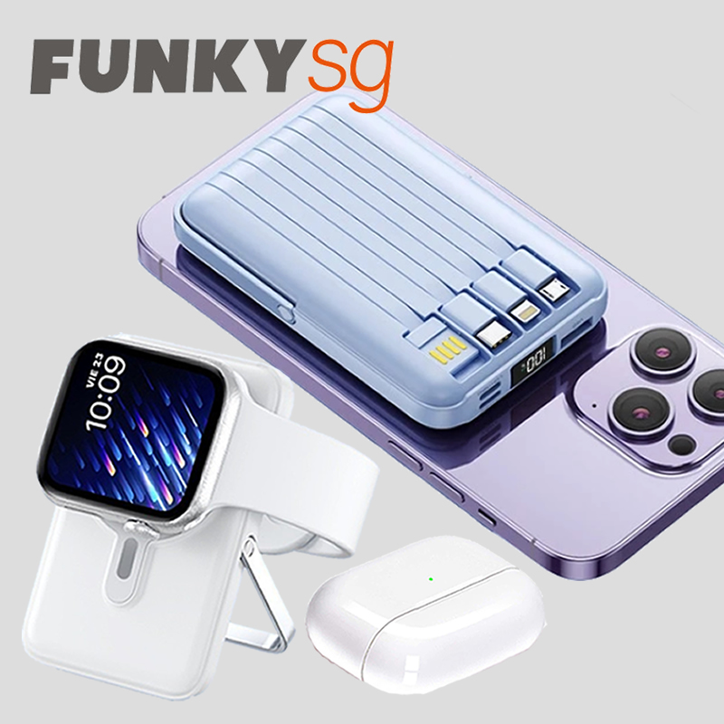 Introducing our new All-in-1 Magnetic 10000mAh Power Bank, designed to keep all your devices charged effortlessly. This versatile power bank supports smartwatches, Bluetooth earphones, and mobile phones, as long as they support Qi wireless charging.