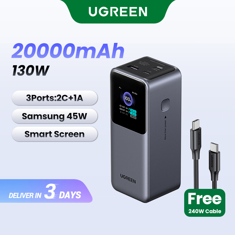 UGREEN 20000mAh Laptop Powerbank PD 130W 1C1A Fast Charging Power Bank for Laptop Dell MacBook Air/Pro Lenovo Power Station TFT Dispaly 3-Port Support SAMSUNG 45W Fast Charging Portable