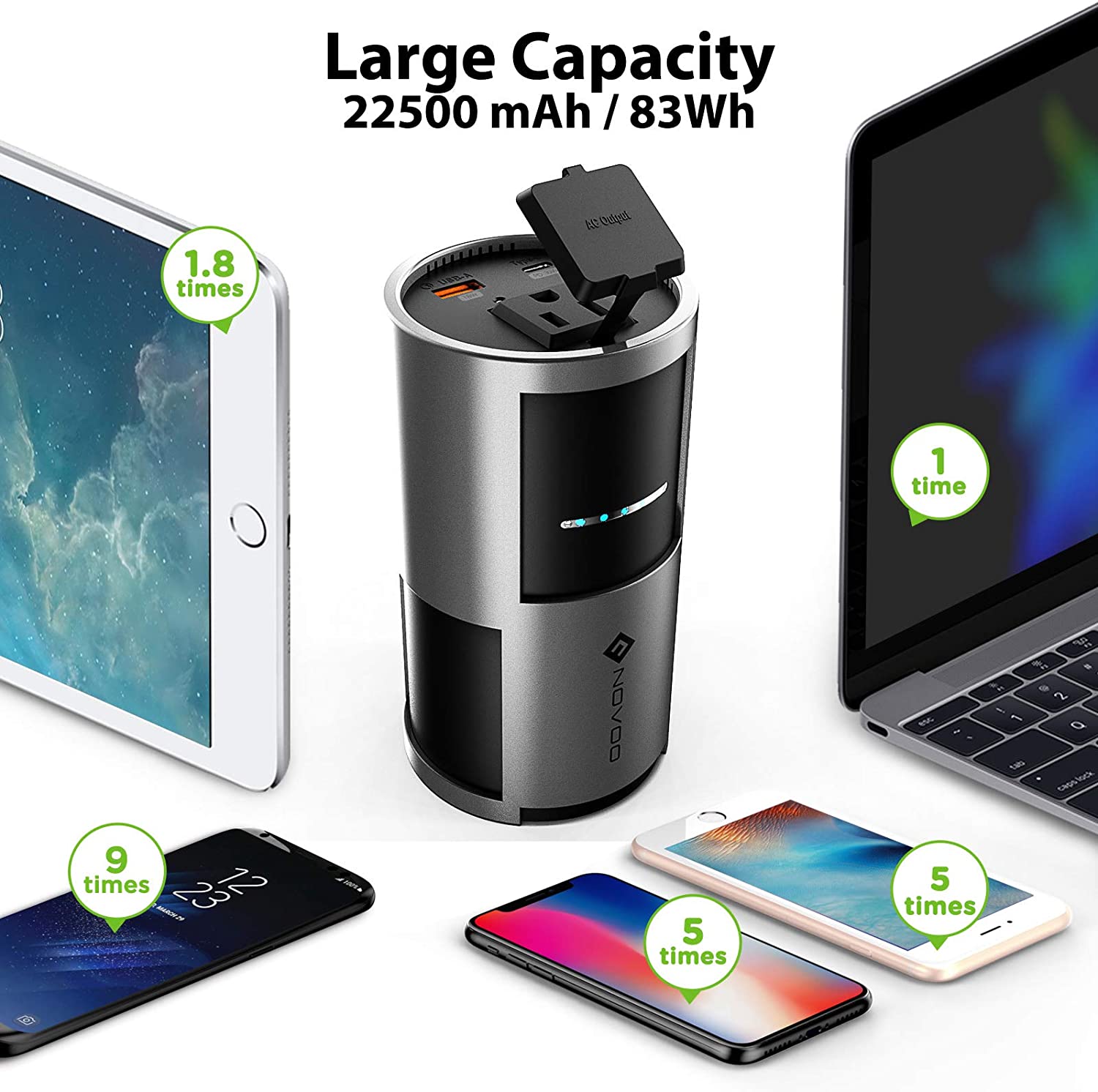 [NOVOO] 22500mAh Power Bank with 85W AC Outlet and 30 Watts Type-C Power Delivery, Ideal Power for Laptops, Drones, Tablets, Smartphones and other Devices (Upgraded 2020 Version)