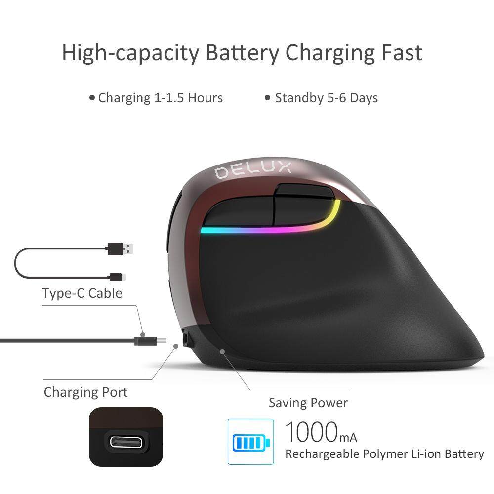 【11 11 Sales】Delux M618 Mini 4.0 2.4GHz dual model Wireless Vertical Mouse 4 Gear DPI RGB Ergonomic Rechargeable Silent click Mice for Office dard golden