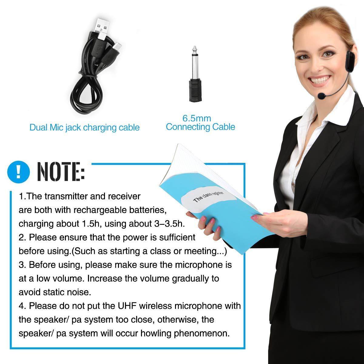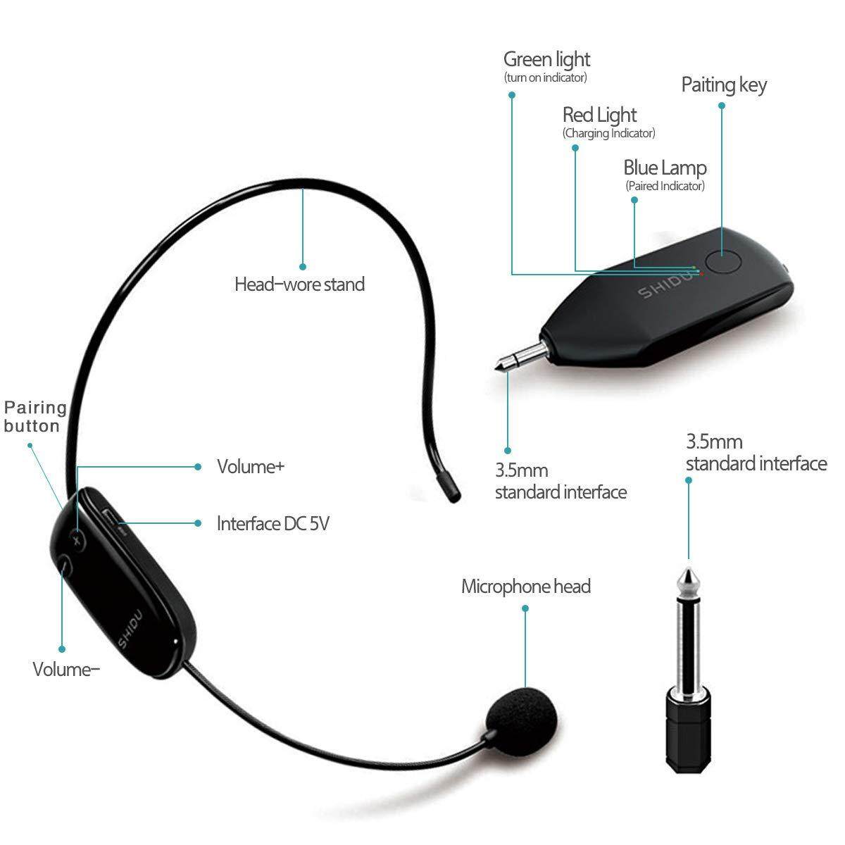 SHIDU U8 Upgraded UHF Wireless Microphone Universal Headset Handheld Mic System With 3.5mm Plug Receiver 165ft Long Range Hands Free for Teachers, Fitness Instructors Support for Voice Amplifier Speak
