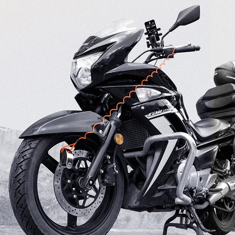 Motorcycle Disc Lock Locked One 4ft / 1.2m Cable Disc Lock Reminder, Orange color reminds you to remove the disc lock, avoid possible damage caused by walking far while the disc lock is engaged. Constructed with aluminum alloy body, sealed against moisture, dust and dirt