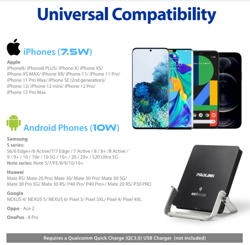 Prolink 10W FAST CHARGE Qi Wireless Charging Pad Ultra Slim / Micro USB [Qi-certified] - Suitable for Qi-enabled phone