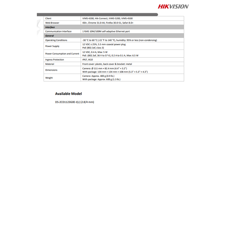 【Singapore Seller】HIKVISION IP CCTV Camera - [Model No: DS-2CD1123G0E-I(L)] + 1080P / 2 MegaPixel Resolution, Day (Color) / Night (Black and White) with Infrared night vision
