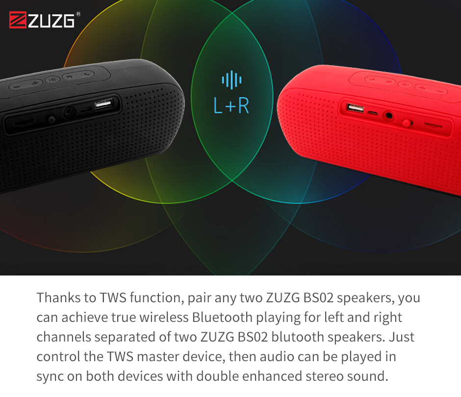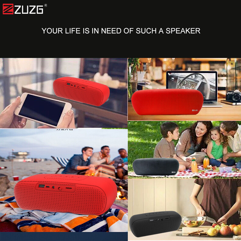 ZUZG Portable Bluetooth Speaker Wireless Stereo Sound Speakers with Mic Support TF AUX TWS