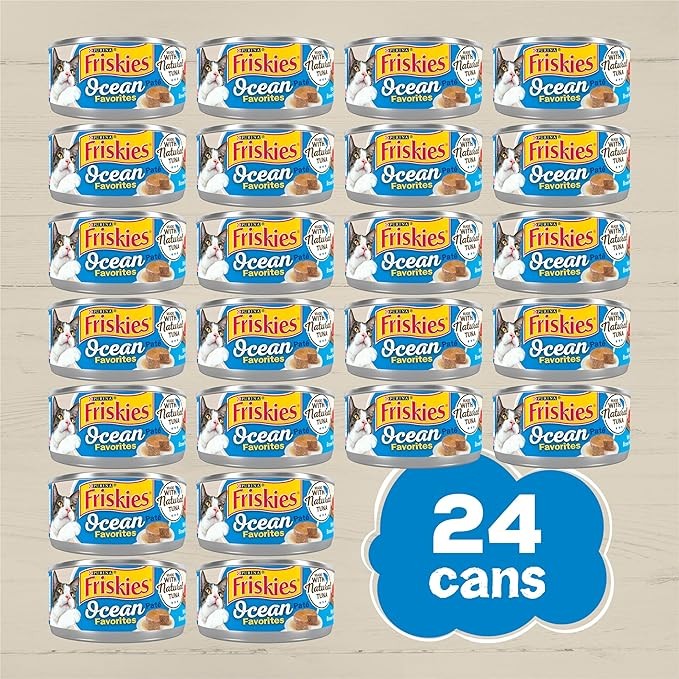 Purina Friskies Wet Cat Food Pate Ocean Favorites With Natural Tuna, Brown Rice and Peas - (Pack of 24) 5.5 oz. Cans